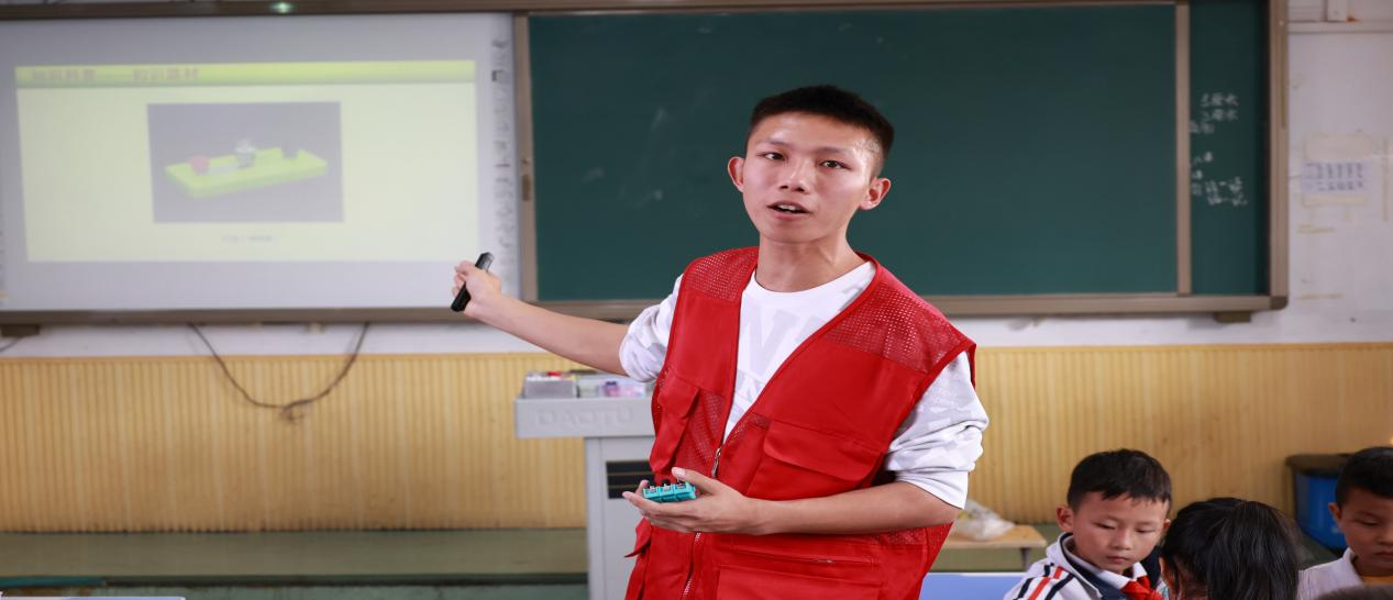 “灯泡发光啦!”伴随阵阵激动地声音,科普团队志愿者槐泽森以闪电为例,通过引入风力发电、水力发电、火力发电等多种发电方式带领学生了解电的产生。随后,在科普团队志愿者吴镇宇以及学校老师的帮助下,学生出色地完成电路连接,并进行多项物理电路实验。物理科普实验课堂的开展,既培养了学生的创新意识与动手实践能力,又使学生探究科学的兴趣更加浓郁!