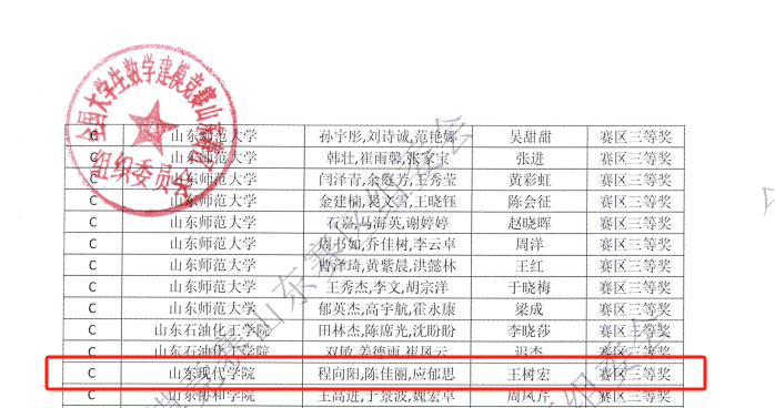 近日,2024年全国大学生数学建模竞赛获奖名单公示,我校学子在此次竞赛中表现优异,斩获山东赛区三等奖。
