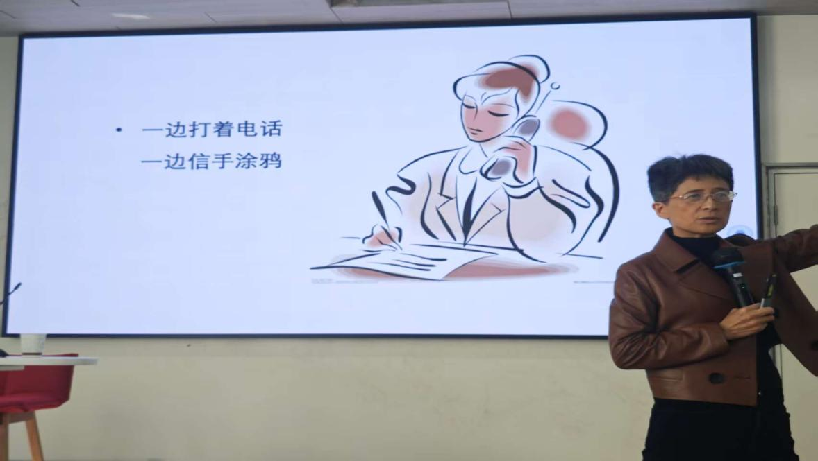 11月8日下午,上海视觉艺术学院波音主持专业教授田奇蕊作《教师语言气质和形象塑造》讲座