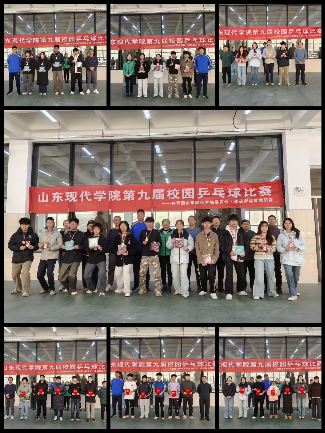 2025年11月17日,山东现代学院第九届校园乒乓球比赛在历时两周、共计185场激烈角逐后,圆满落下帷幕。本次比赛由校团委、教务处、基础部联合主办,体育教研室承办,吸引了近百名乒乓球爱好者踊跃参赛。