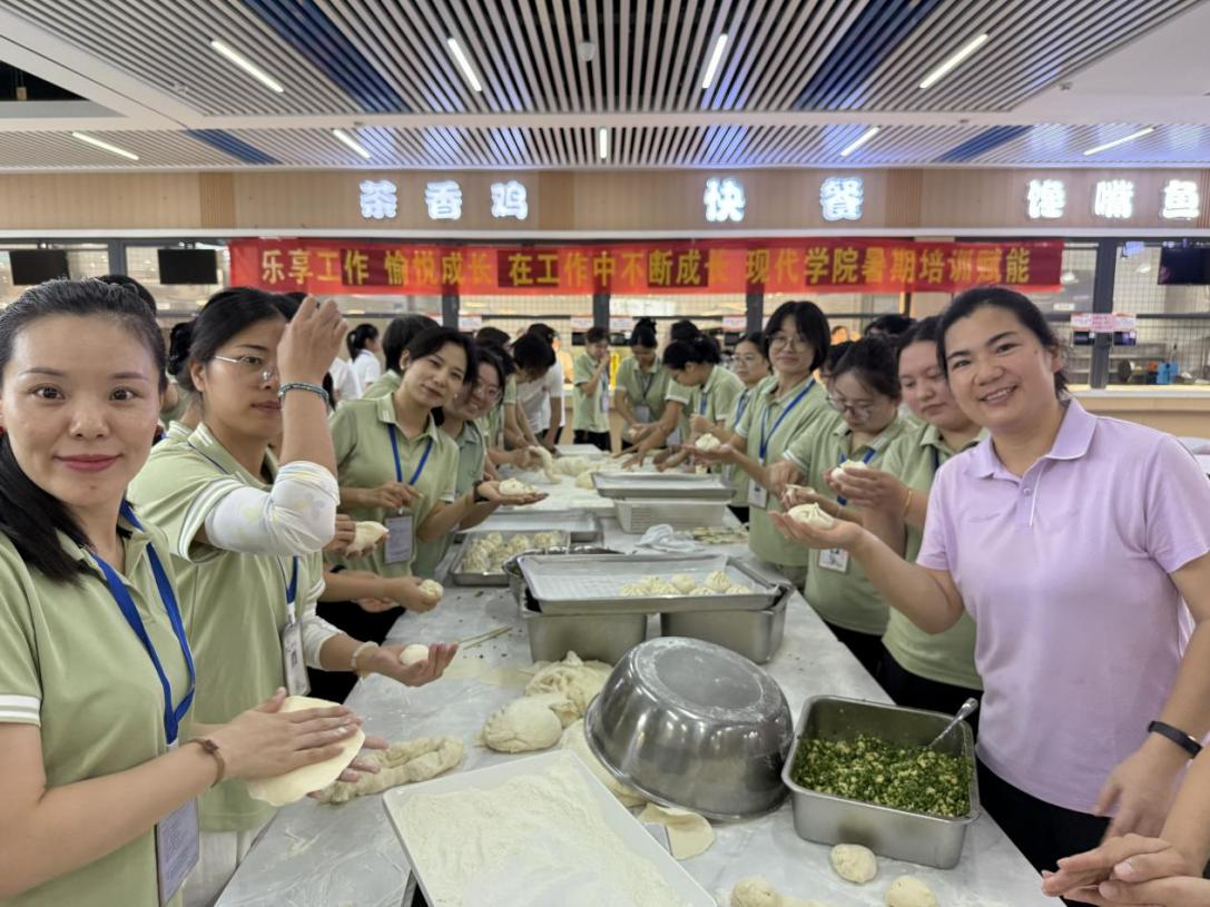 8月23日上午,山东现代学院基础部于慈俭二楼成功举办厨艺活动,基础部全体教师积极响应、热情参与。校长助理、教务处处长董艳华,基础部主任赵林林以及护理学院执行院长刘鹏卫亲临现场,与教师们共同体验这场别开生面的厨艺盛宴。活动以美食为纽带,进一步增强了团队凝聚力。